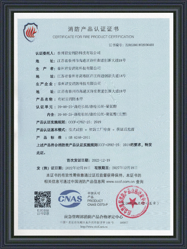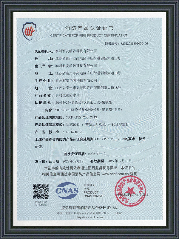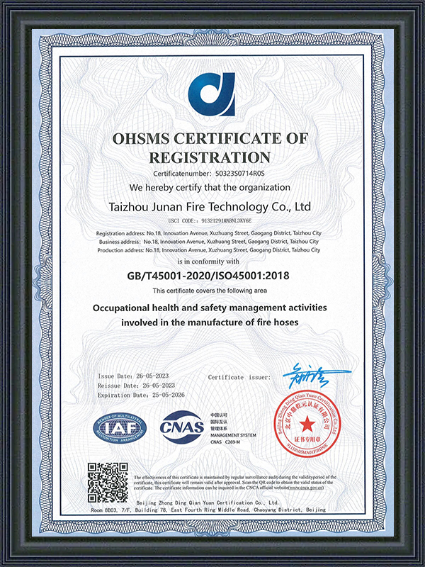 Jun'an nutzt modernste Produktionstechnologie, um sicherzustellen, dass die Qualität des Schlauchs internationalen Standards entspricht. Sein mit TPU ausgekleideter, halbstarrer Flachschlauch entspricht nicht nur nationalen Standards, sondern erfüllt auch die Zertifizierungsanforderungen entwickelter Länder wie Europa und den Vereinigten Staaten.
