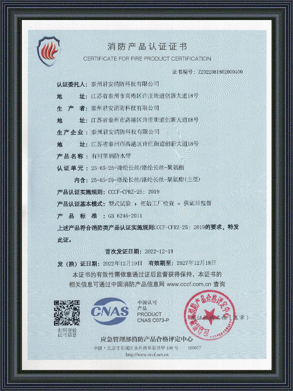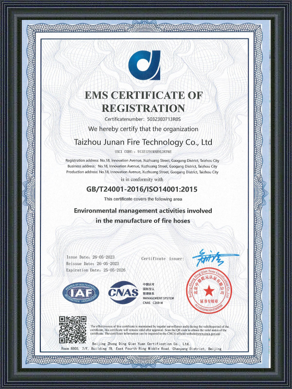 Taizhou Jun'an Fire Technology Co., Ltd. hat sich als auf die Herstellung von Feuerwehrschläuchen, Feuerlöschausrüstung und Notfallrettungsausrüstung spezialisiertes Unternehmen mit seiner starken Produktionstechnologie und seiner reichen Branchenerfahrung zu einem Branchenführer entwickelt. Das Unternehmen hat seinen Sitz in der Nähe von Shanghai, dem größten Handelshafen der Welt, mit einer hervorragenden geografischen Lage und kann schnell auf die Marktnachfrage reagieren.